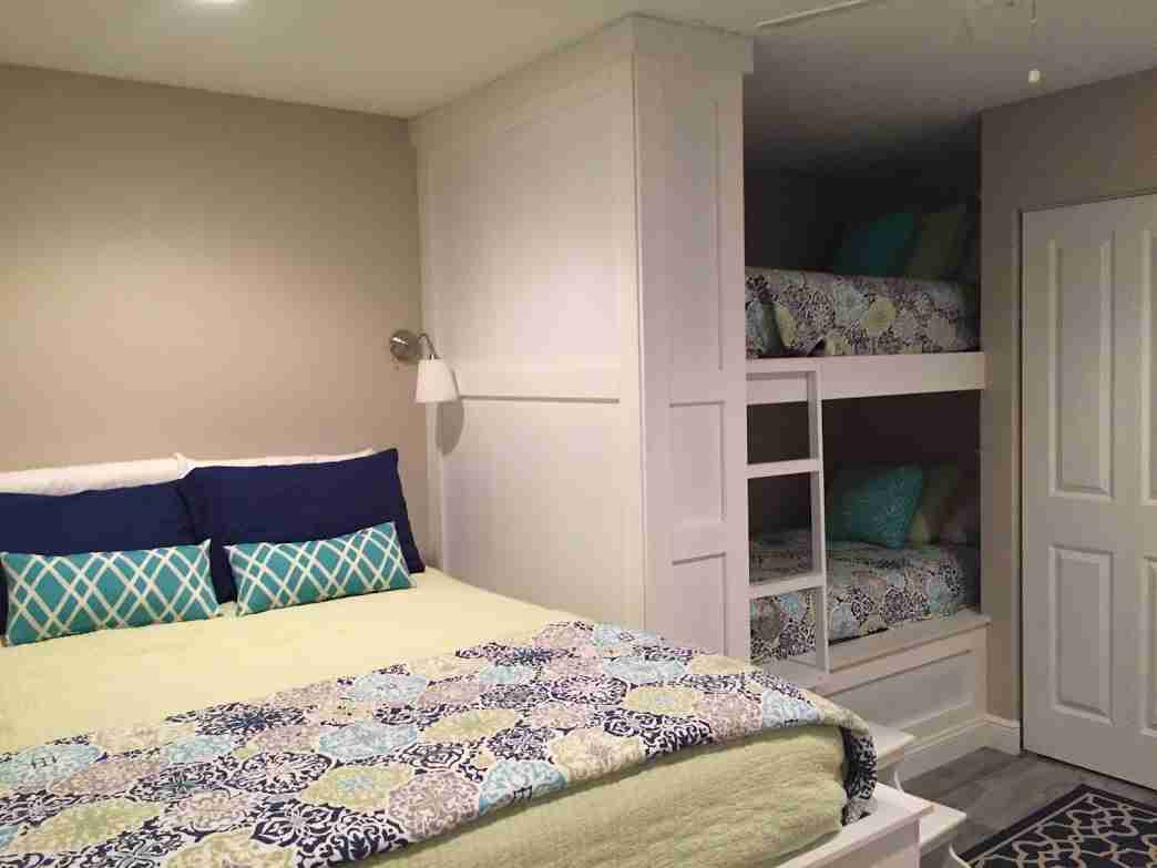 - Bedroom 2: Queen and Twin bunkbeds